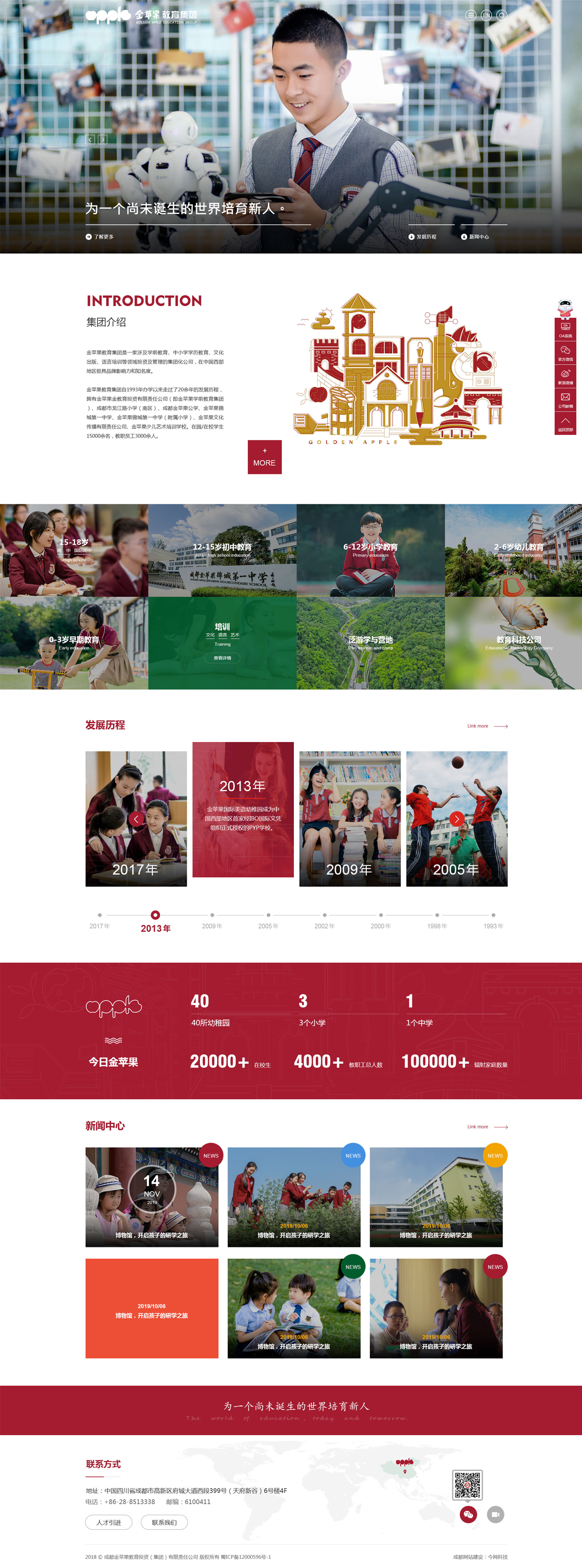 金蘋果教育集團(tuán)是一家涉及學(xué)前教育、中小學(xué)學(xué)歷教育、文化出版、語(yǔ)言培訓(xùn)等領(lǐng)域投資及管理的集團(tuán)化公司,在中國(guó)西部地區(qū)極具品牌影響力和知名度。