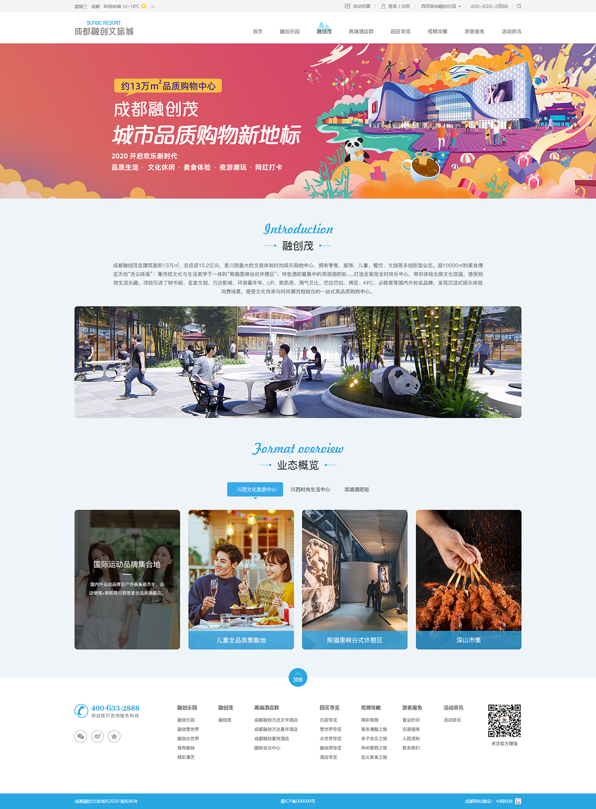 成都融創(chuàng)文旅城,是融創(chuàng)文旅集團重點打造的世界級特大型文化旅游商業(yè)綜合項目,總投資約500億,總占地面積約5000畝,包括文化旅游和地產(chǎn)。其中,文旅區(qū)投資約150億,占地約1600畝,由八大業(yè)態(tài)融創(chuàng)樂園、融創(chuàng)雪世界、融創(chuàng)水世界、成都錦秀、豪華酒店集群、國際會議中心、風(fēng)情商業(yè)街和融創(chuàng)茂組成,是集多元產(chǎn)業(yè)與一體的世界級綜合旅游度假目的地。成都融創(chuàng)文旅城的建成將全面升級整個四川的旅游格局,將形成“問道青城山、拜水都江堰、歡聚文旅城”的西部文旅新三角,為世界帶來更高品質(zhì)、更全業(yè)態(tài)、更多歡樂的家庭度假新體驗。