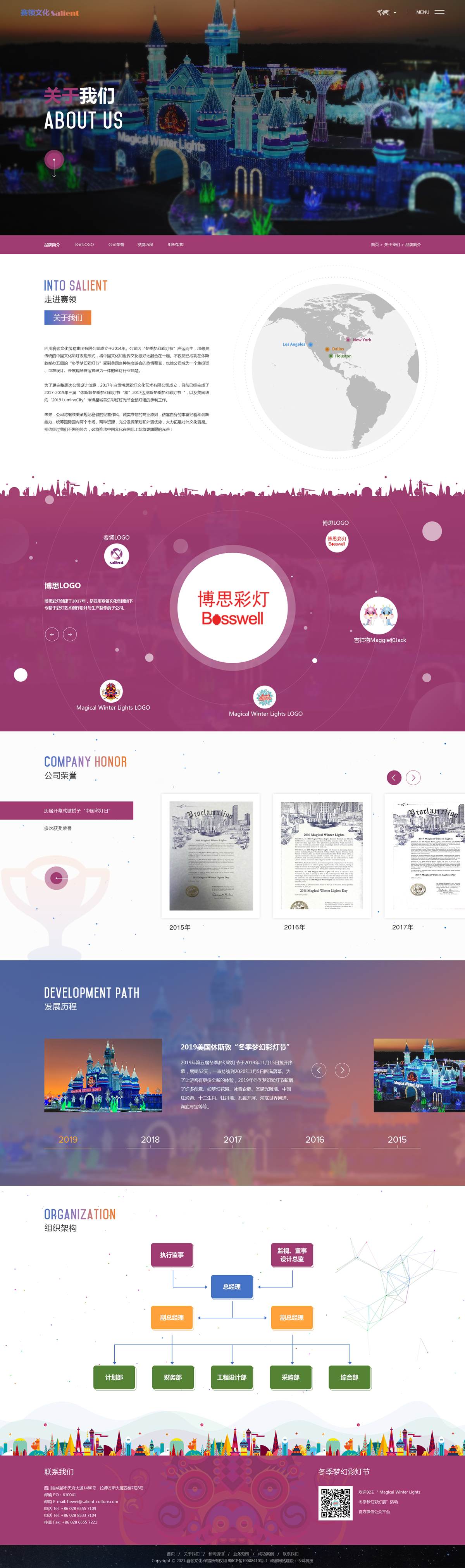 四川賽領(lǐng)文化貿(mào)易集團(tuán)有限公司因“冬季夢幻彩燈節(jié)”應(yīng)運(yùn)而生,用最具傳統(tǒng)的中國文化彩燈表現(xiàn)形式,將中國文化和世界文化很好地融合在一起。不僅使已成功在休斯敦舉辦五屆的“冬季夢幻彩燈節(jié)”受到美國各種族裔游客的熱情贊譽(yù),也使公司成為一個(gè)集投資、創(chuàng)意設(shè)計(jì)、外展現(xiàn)場營運(yùn)管理為一體的彩燈行業(yè)翹楚。