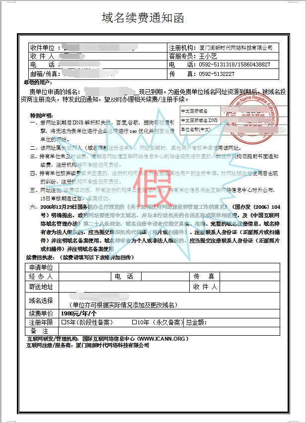 關(guān)于收到域名續(xù)費(fèi)通知文檔