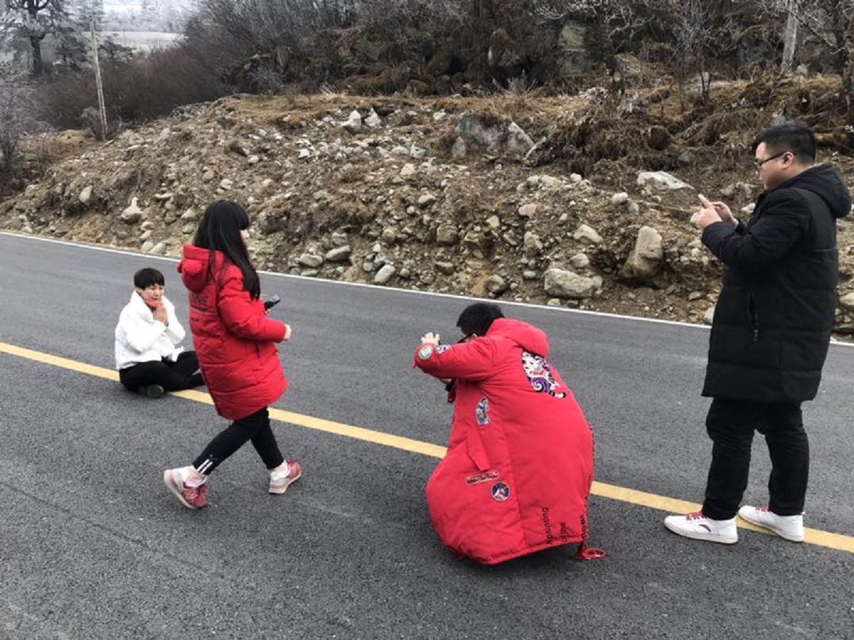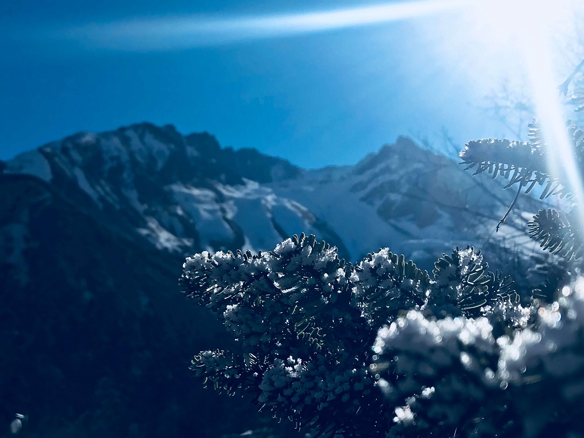 1月26號(hào)清晨出發(fā),在四五個(gè)小時(shí)的車程后,我們來(lái)到了甘孜州,略作吃飯和修整下午就來(lái)到了奇觀異景的紅石公園。剛走下車的那一刻就能感受到一陣?yán)滟目諝鈸涿娑鴣?lái),抬眼望去天邊于山峰交界處一片蒼茫,雪松屹立山間——人間仙境一般,讓人仿佛之間能有一種雪霧里會(huì)悠然飄過(guò)一個(gè)仙風(fēng)道骨的身影。